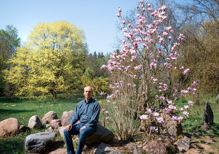 O ši foto daryta Skideriškio dendrologiniame parke, kai prasikala žaluma ir pražysta magnolijos. Labai gražus Lietuvos kampelis. Siūlau aplankyti.